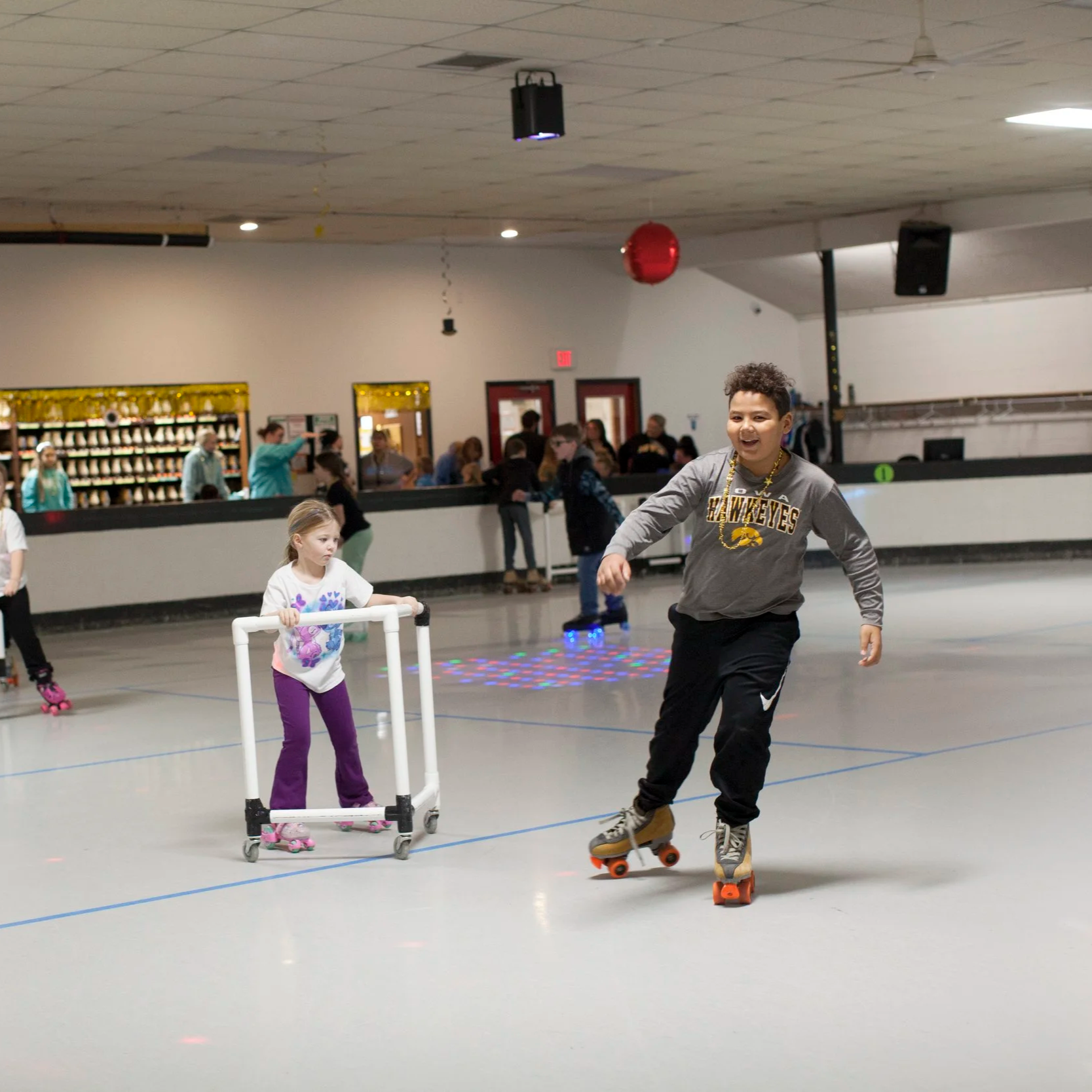 If bringing your own skates, no black toe stops or rollerblades! No exceptions.